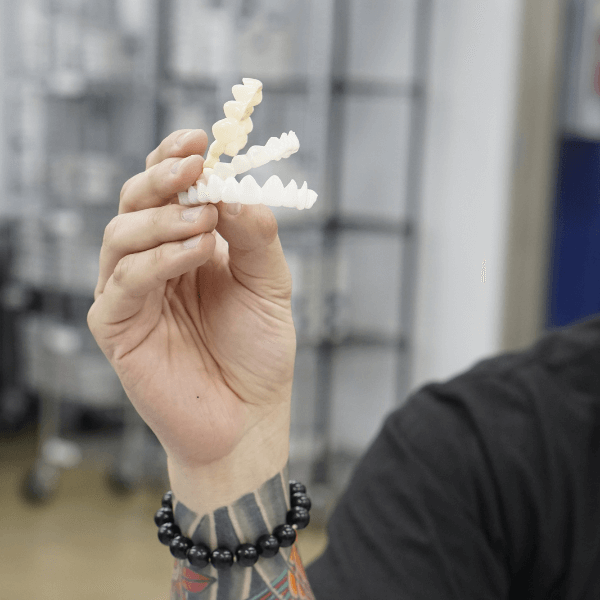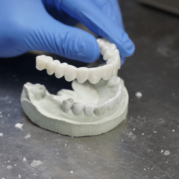 Utilizando los modelos de sus dientes existentes, nuestro equipo de diseño digital interno esboza los diseños iniciales para su sonrisa con detalles de aspecto natural, utilizando la tecnología más avanzada en software de modelado 3D. Una vez que el diseño de su sonrisa recibe el visto bueno para la producción, comienza el meticuloso proceso de producción.