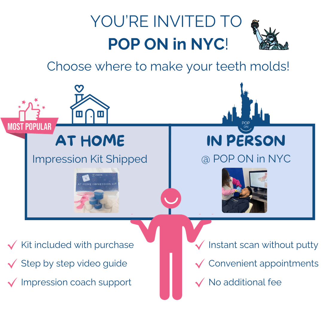 Recientemente hemos introducido la opción de añadir un Plan de Protección de Pérdida de 1 Año, de modo que si algo le ocurre a su Pop On Smile, se lo haremos de nuevo. Sin preguntas. Nuestro objetivo es asegurarnos de que nunca tenga que preocuparse por quedarse sin su sonrisa.